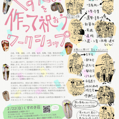 予定 2/22(日)上池袋くすのき荘、3/1(日)高島平time spot studioにて、くすだま作りワークショップを開催します。春の旅立ちを手作りくすだまでお祝いしませんか。