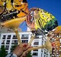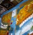 写真はきのうの会場で撮ったもの。ステージの左右に飾っている一畳くらいの絵二枚です。きのうの明け方完成した新作!