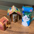 いろいろな材料と道具をそろえておいて、一応「今回はこういうのを作ってみようというテーマ」は持っていきますが、具体的な作例を作って持参する場合もあれば「ハロウィンが近いからおばけの飾りを作ろう」とか「みんなで動物園をつくろう、動物だけじゃなくて建物とか道とか看板やポスターやチケットも作ってみよう」など自由度の広いテーマ設定をすることもあり、教室で作るものはメンバーそれぞれの年齢や発想や技術度でさまざま。