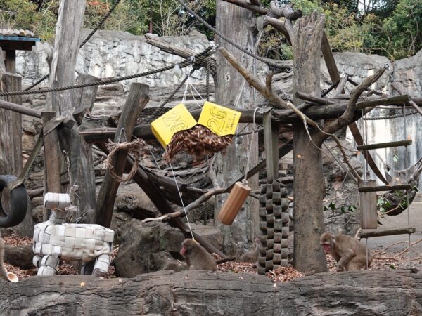 去年の秋にオカピがらの箱型くすだまを進呈(くすだまニュース第一号で取り上げてます)した、よこはま動物園ズーラシアのオカピの飼育員さんから、1月3日に謎の連絡が。なんと、オカピくすだまを参考にして、ズーラシアのお正月のお楽しみとしてニホンザルにくすだまをプレゼントしたとのこと!